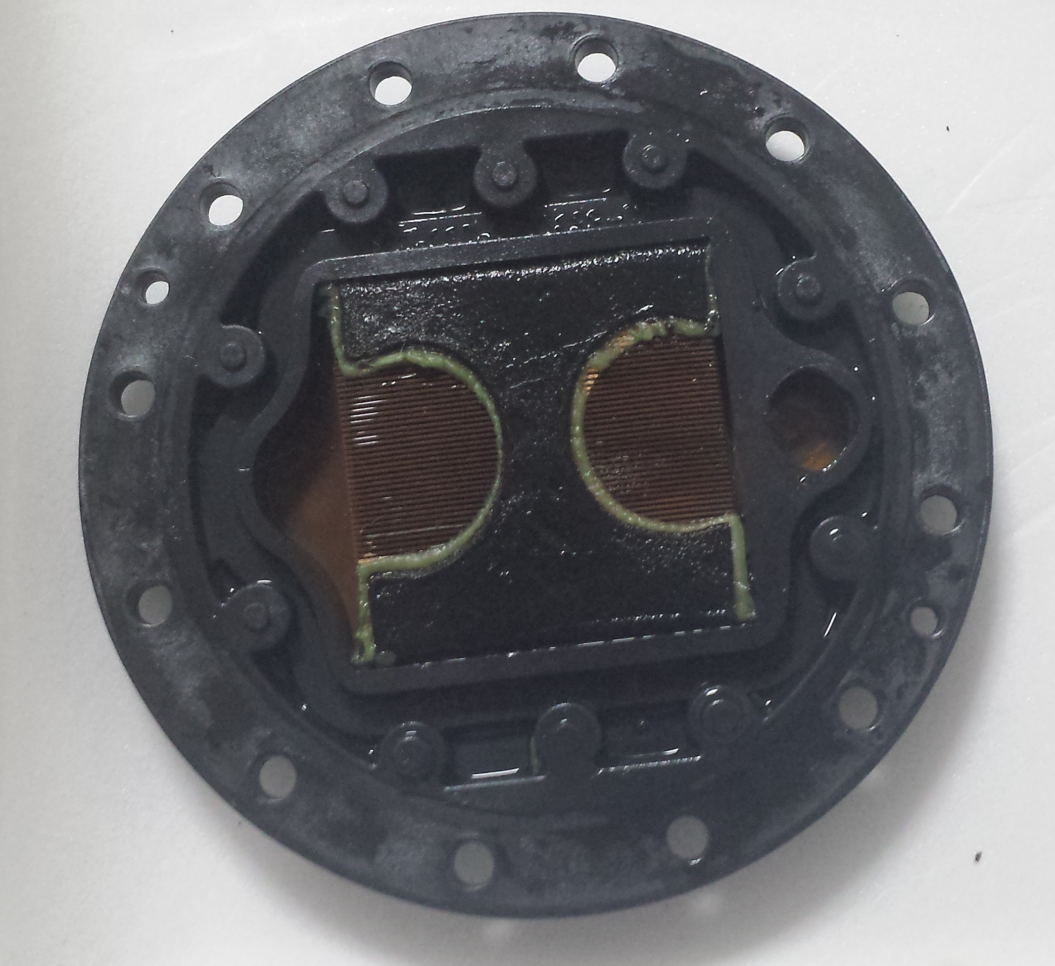 構造は簡単で、外周のネジでポンプの電導コイル部分の蓋とクーラント液封印を兼ねています。