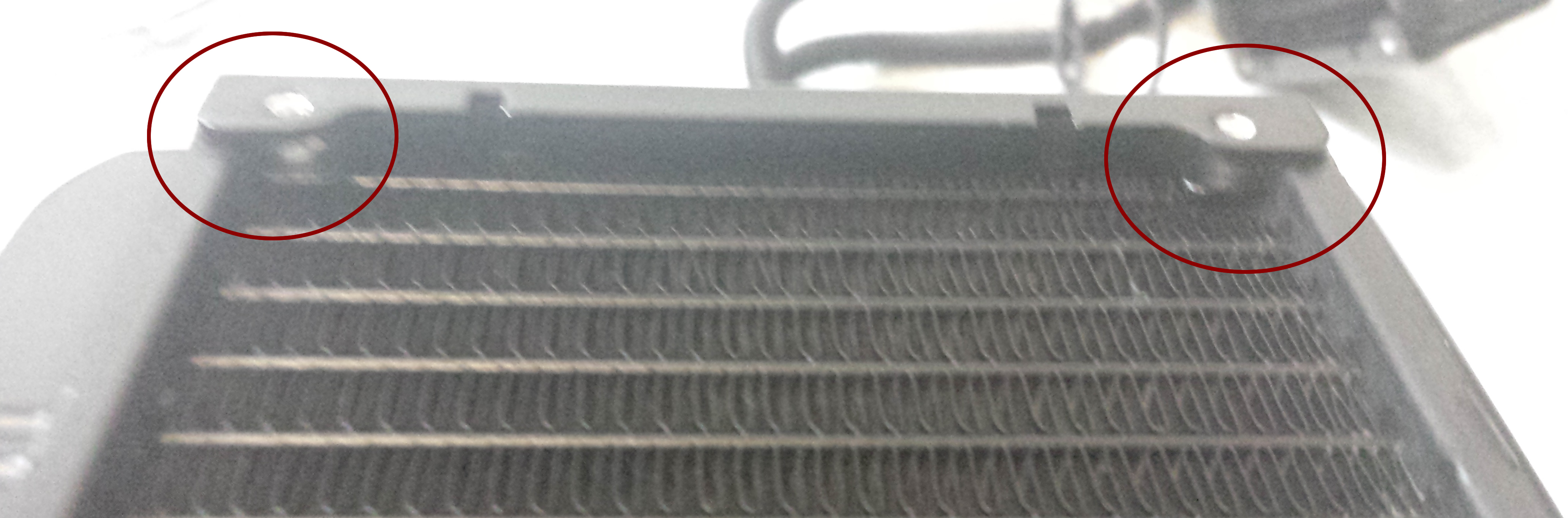 クーラント液交換の際にラジエーターと取り付けネジ部の干渉で穴が空いてしまった